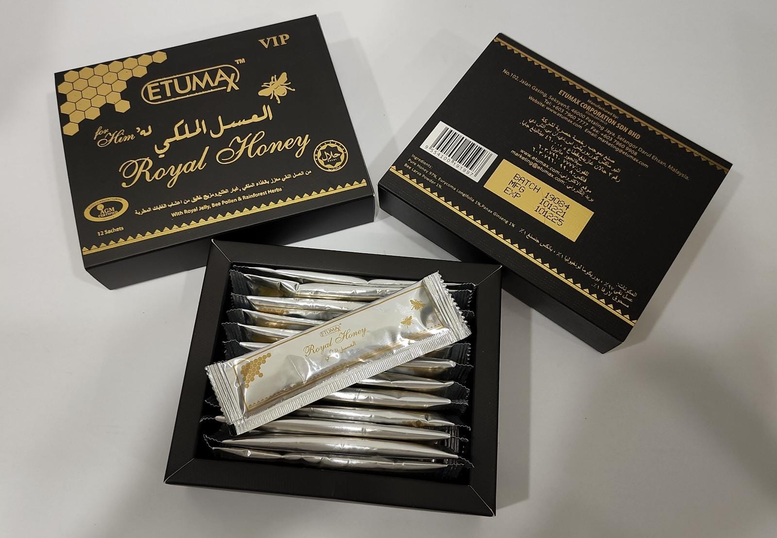 Etumax Royal Honey, Sticks de miel pur et naturel provenant de Malaisie. Idéal pour booster le tonus et l’énergie au quotidien afin de restaurer la virilité chez l'homme
